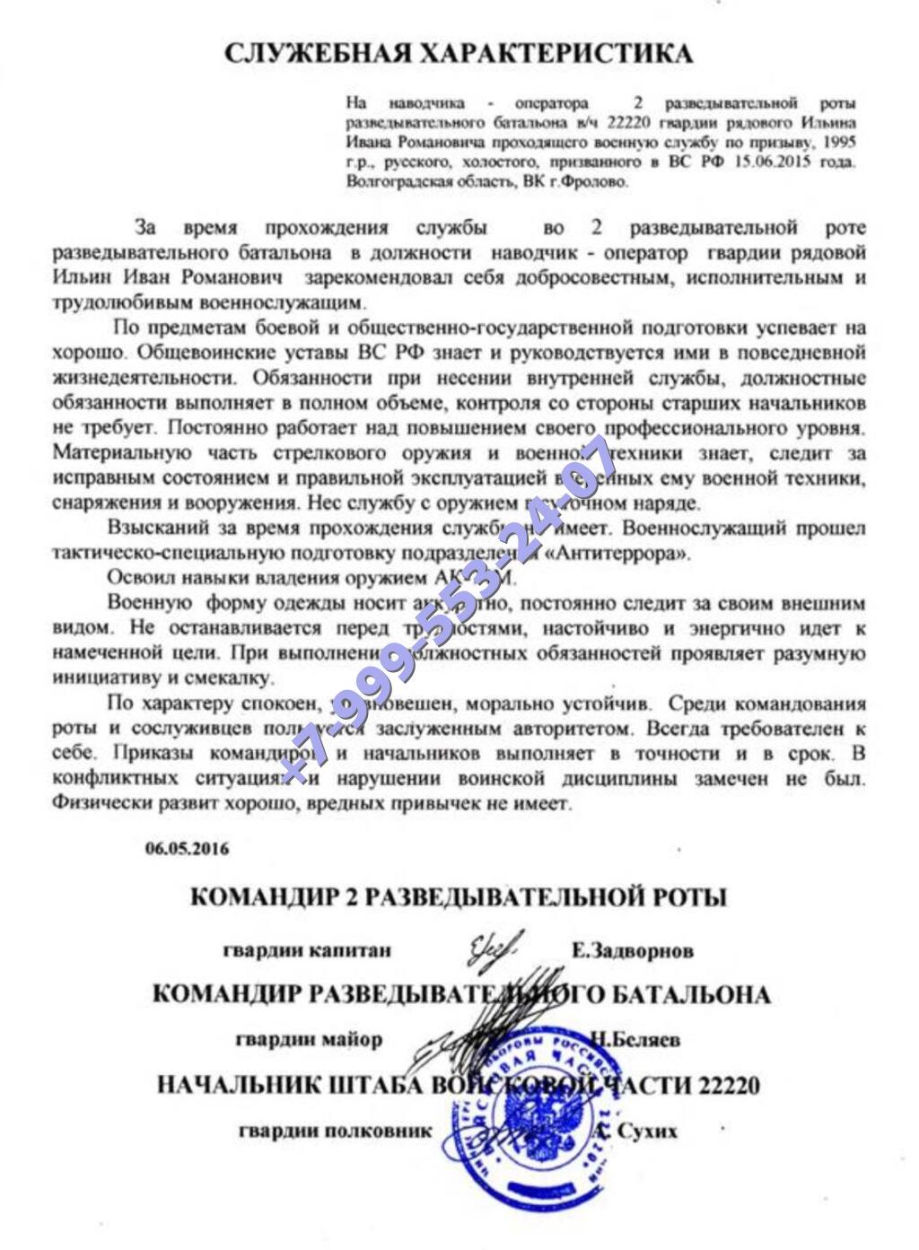 Наша компания предлагает заказать характеристику с места военной службы с доставкой. Документ легальный, имеет правовой статус.